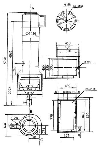 1、本除塵器可由單筒及數(shù)個單筒組合使用,單筒處理風量為15000-18000m3/h。