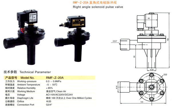 此種脈沖閥顯著的特點(diǎn)是:管內(nèi)氣體阻力低,可應(yīng)用于低壓氣源,與高壓閥相比,可降低能耗,延長(zhǎng)膜片使用壽命。