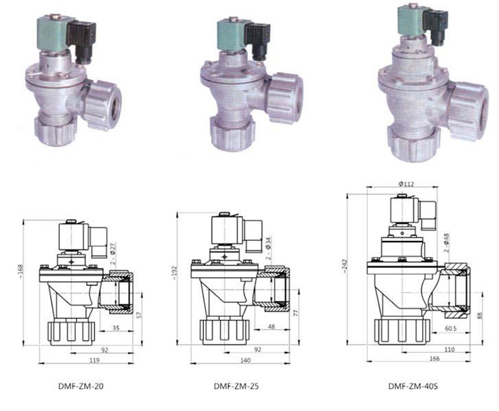 DMF-ZM型電磁脈沖閥是與“Z”系列相同的直角閥,適用于氣包與除塵器噴吹管的安裝連接,其進出口二端帶有安裝用的固定螺母,使安裝和使用更為方便。