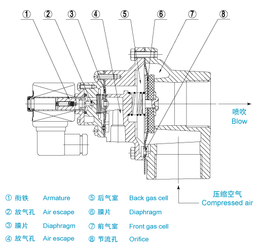 | *全部選用優(yōu)質(zhì)的進口成品膜片,膜片組件在制造過程中全部檢查,合格后再進入裝配線。每只成品閥都通電通氣進行噴吹檢驗。 | |